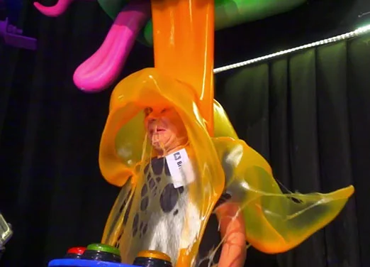 A Ping Pong Explosion experiment blasts hundreds of Ping Pong balls high in the air.