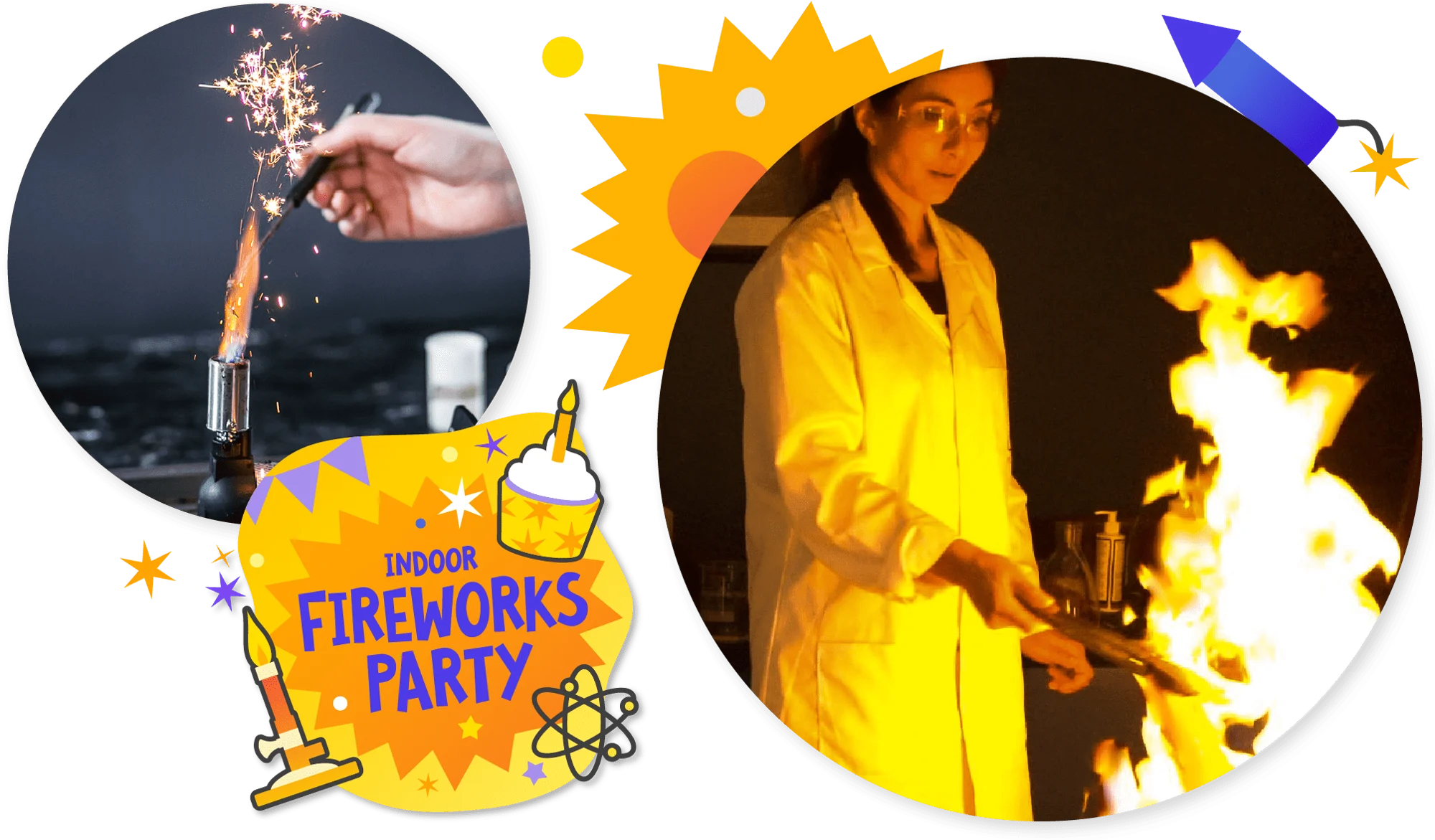 • 1-hour of interactive, indoor firework birthday FUN with your Edufun Academy Scientist!